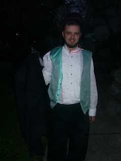 So we get there, and we're like the first ones there. So we sit down at our table and just hang out like old times since nearly everyone now leaves for off campus classes at lunch. We all eat and then I went around and got pictures with most everyone I knew there. It was kind of just who I could find since a lot of people were crowded on the dance floor. I asked D. O. if she wanted to join me in my adventure but she didn't. Apparently that is a big boyfriend fopa, but being the man I am, I didn't know that. So then it was up to my gay friend to explain my mistake to me. It was strait out of a sitcom. We then patched things up, quite quickly might I add. So then we "danced" together. I use quotes because you could hardly call it dancing. Basically I waved my hands around similar to how other people were doing and just kind of stepped back and forth. Then when I was looking for people to take pictures with, I kind of did a fresh prince thing where I sort of danced my way across the dance floor while looking for people I knew.